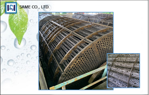 The rotating biological contactor (RBC) contains a serial of parallel network round shape filter that vertically joined. Half part of it is immersed in disposal sewage and half part of it is explored in air.