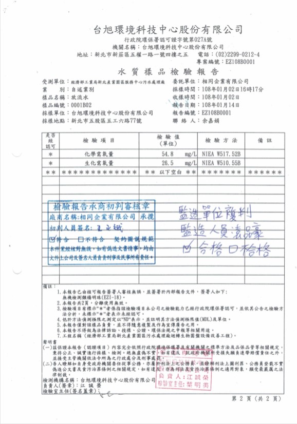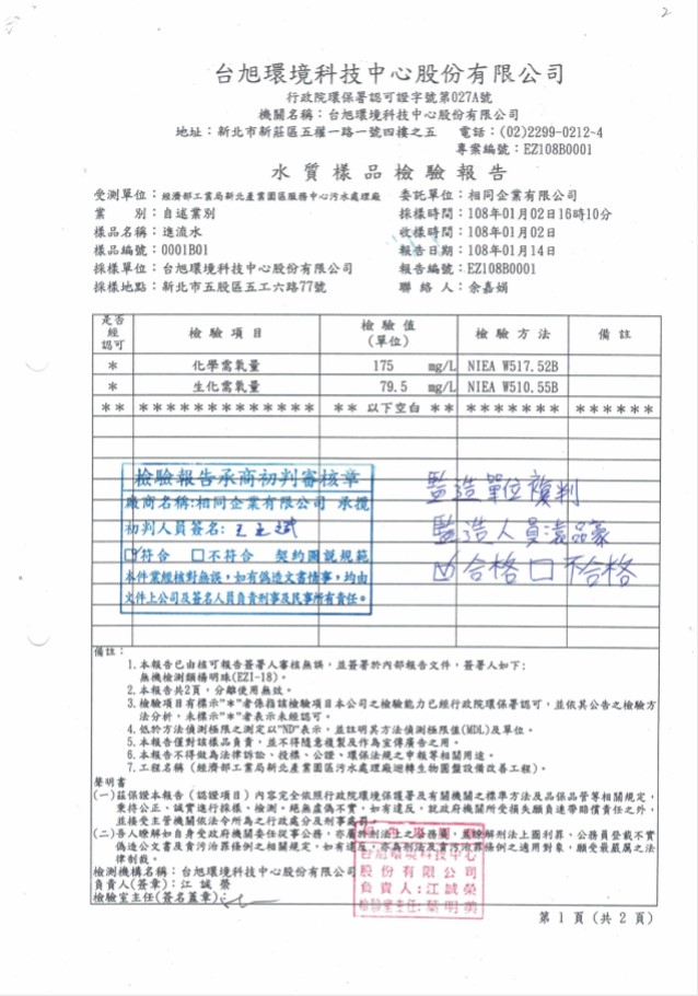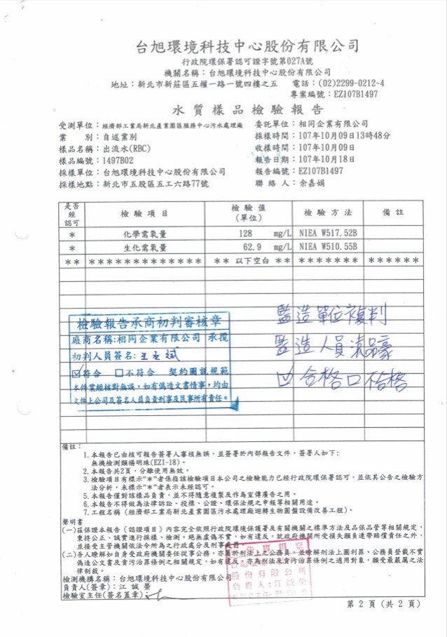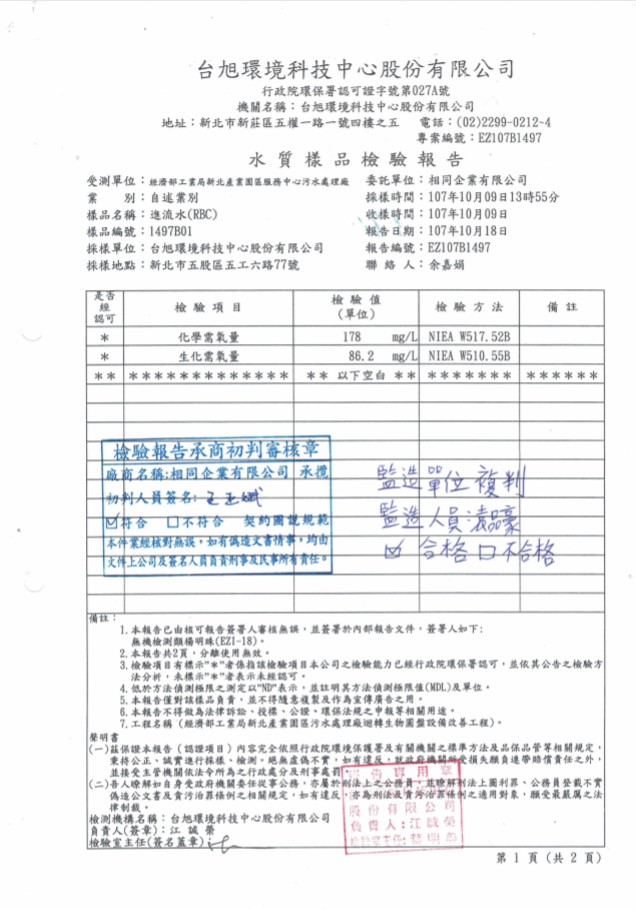 2018 New Taipei Wastewater Treatment Plant Biological Rotating Disk Replacement Project Performance - Water Quality Inspection Report After Equipment Installation